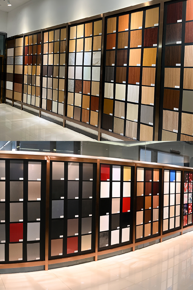 1.花色無限:通過先進的印刷和壓花等技術,覆膜鋼板表面的裝飾膜可模擬木紋、石紋、布紋、純色乃至金屬質感,滿足現代、簡約、古典等各種設計風格需求。2.質感多樣:覆膜鋼板可滿足高光、啞光、膚感、浮雕…觸感和視覺效果任君選擇。3.定制靈活:尺寸、形狀、顏色、紋理均可根據項目需求定制,助力打造獨一無二的空間標識。