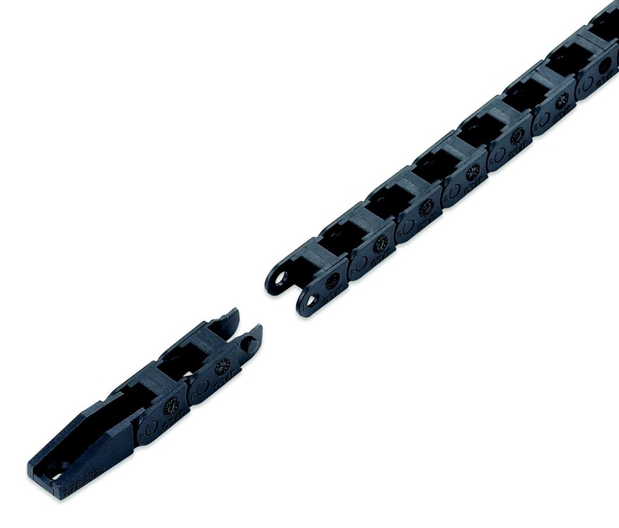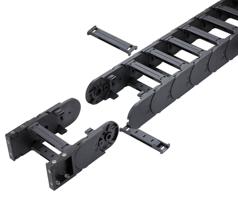 坦克工程拖鏈適用于數(shù)控機床、加工中心、自動化機械及生產(chǎn)線等各類機床、機器人、運輸機械、測量儀器、搬運裝置以及其它驅(qū)動控制作為電線、電纜液、氣軟管的防護裝置,能隨機床、機械設備移動部件協(xié)調(diào)地運行,可發(fā)揮安全保護和導向的能力,可延長被保護的電線、電纜、液、氣軟管的使用壽命,降低消耗,可大大改善機床、機械設備的電線、電纜、液、氣軟管分布零亂的狀況,使之整齊、規(guī)則地排列在一起,能增強機床、機械設備的整體藝術(shù)造型效果。坦克工程拖鏈按材質(zhì)分為塑料坦克工程拖鏈和鋼制坦克工程拖鏈。按結(jié)構(gòu)分為橋式坦克工程拖鏈和全封閉式坦克工程拖鏈。坦克工程拖鏈內(nèi)部高度從10-80(mm)不等,寬度從10-350(mm)不等,根據(jù)您想要保護的線纜的尺寸和線纜的數(shù)量來確定。拖鏈的使用強度主要和原料中所含的尼龍含量有關(guān)系。所以坦克工程拖鏈廠家又分為普通型坦克工程拖鏈和增強型坦克工程拖鏈。