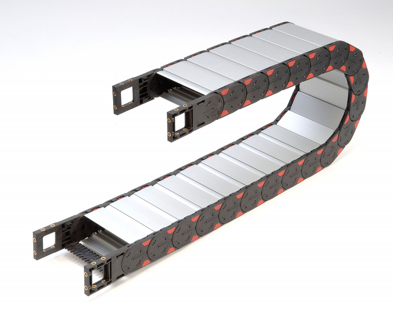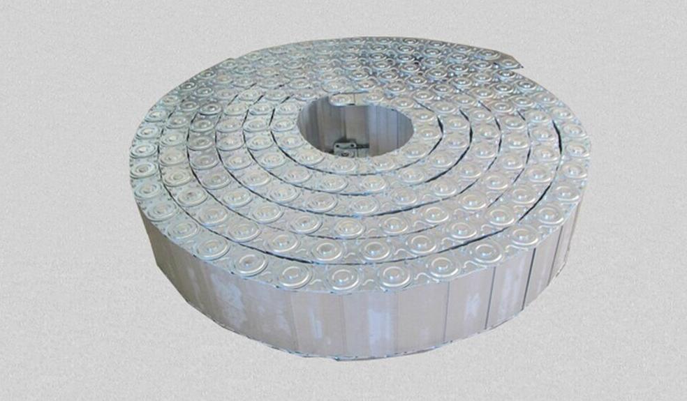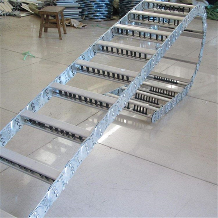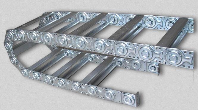 鋼鋁拖鏈的主體是由鏈板(采用優(yōu)質(zhì)鋼板經(jīng)淬火后再拋光鍍鉻/鍍鋅/噴塑處理)、支撐板(擠拉鋁合金)、軸銷(合金鋼)等部件組成.使電纜或橡膠管與拖鏈之間不產(chǎn)生扭曲變形,鏈板經(jīng)鍍鉻處理外形效果新穎,結(jié)構(gòu)合理,靈巧強(qiáng)度高,該產(chǎn)品鋼性好,不變形.安裝方便,使用可靠,易拆裝,不下垂.由于本產(chǎn)品外形精美,可在較大程度上增強(qiáng)機(jī)床設(shè)備的整體藝術(shù)美觀效果,增強(qiáng)我國(guó)機(jī)床,機(jī)械設(shè)備在國(guó)際市場(chǎng)的競(jìng)爭(zhēng)能力。