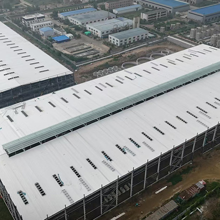 海美防水瓦以鋼板為基板,表面貼覆具有防水防腐功能的TPO/PVC卷材(熱塑性聚烯烴類防水卷材),是海美金屬推出的新一代防水防腐屋面建筑材料。海美防水瓦主要特點(diǎn)就是在各類環(huán)境下不易生銹不易漏水,使用熱風(fēng)焊接進(jìn)行相連,覆蓋全部裸露的縫隙,在使用過(guò)程中可以達(dá)到蓄水不滲透的效果,防水效果好,同時(shí)還有較好的抗風(fēng)揭性能和耐老化性能,為鋼結(jié)構(gòu)建筑屋面提供了長(zhǎng)久的防護(hù)。