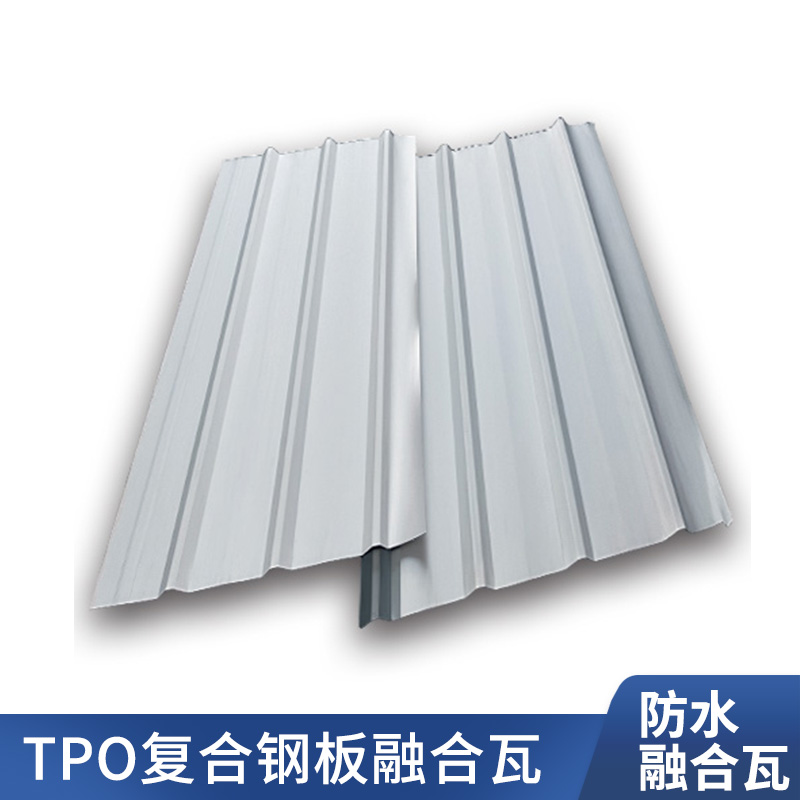 TPO/PVC鋼塑復合防水瓦以鋼板為基板,表面貼覆具有防水防腐功能的TPO/PVC卷材(熱塑性聚烯烴類防水卷材),是一款防水防腐屋面建筑材料。TPO/PVC鋼塑復合防水瓦主要特點就是在各類環境下不易生銹不易漏水,使用熱風焊接進行相連,覆蓋全部裸露的縫隙,在使用過程中可以達到蓄水不滲透的效果,防水效果好,同時還有較好的抗風揭性能和耐老化性