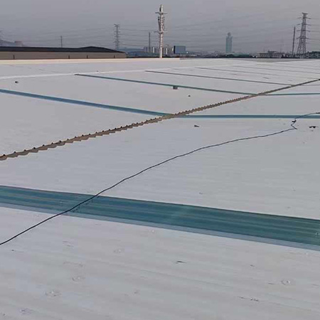 海美防水瓦以鋼板為基板,表面貼覆具有防水防腐功能的TPO/PVC卷材(熱塑性聚烯烴類防水卷材),是海美金屬推出的新一代防水防腐屋面建筑材料。海美防水瓦主要特點(diǎn)就是在各類環(huán)境下不易生銹不易漏水,使用熱風(fēng)焊接進(jìn)行相連,覆蓋全部裸露的縫隙,在使用過(guò)程中可以達(dá)到蓄水不滲透的效果,防水效果好,同時(shí)還有較好的抗風(fēng)揭性能和耐老化性能,為鋼結(jié)構(gòu)建筑屋面提供了長(zhǎng)久的防護(hù)。